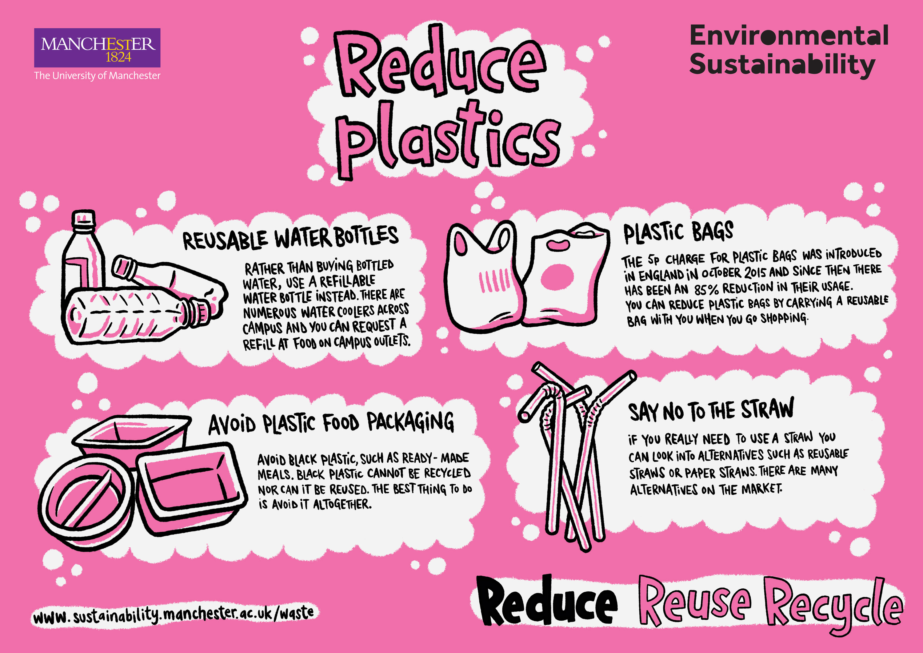 Microplastics are formed when plastics break down. When out take a reusable water bottle if needed.